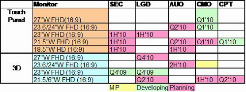 隨著Windows 7推出與對未來市場影響力,2010年多數(shù)面板廠商針對Notebook PC市場積極開發(fā)具觸控功能11.6寸寬螢?zāi)幻姘澹瑫r(shí)每一家生產(chǎn)迷你筆電面板廠商也都開發(fā)具有觸控功能面板。從下表一可以清楚了解每一廠商開發(fā)具觸控功能Notebook PC或迷你筆電面板時(shí)間表。
