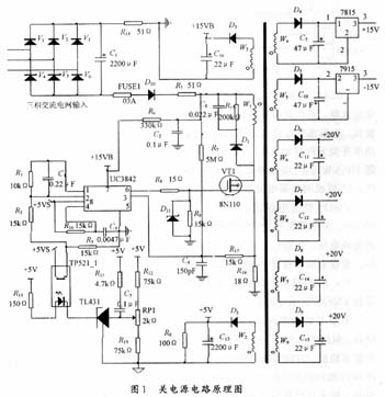 本文介紹了一種基于專用芯片UC3842的開關(guān)穩(wěn)壓電源。在電機調(diào)速控制器中,該電源提供功率開關(guān)元件基極(柵極)驅(qū)動電壓和控制電路工作電壓。開關(guān)電源性能的好壞直接影響到電機調(diào)速控制器的工作可靠性。該電源是為30 kW開關(guān)磁阻電機控制器設(shè)計的,也適用于采用功率MOSFET或IGBT作為開關(guān)元件的中小功率感應(yīng)電機調(diào)速控制器。