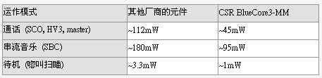 運作模式 其他廠商的元件 CSR BlueCore3-MM