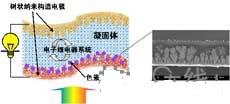 瀨和表示,該太陽能電池的基本發電原理為色素增感型。只是(1)電解質采用固體而非液體;(2)采用樹狀電極+多孔狀鍍金膜代替ITO等透明電極,可實現基于等離子共振的增感效應,這兩點與之前不同。