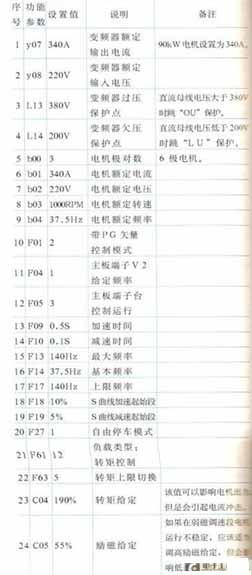 表1示出變頻器參數設置及其說明