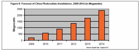 圖8所示為iSuppli公司對2009-2014年中國光伏安裝情況的預測。