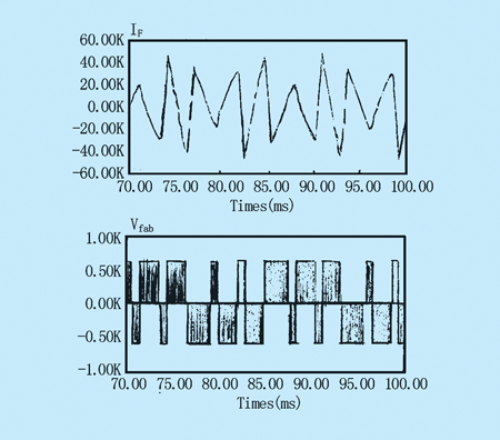 圖6為補償負荷諧波的電流波形和PWM電壓