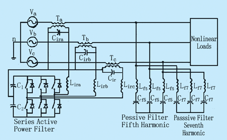 圖7帶并聯無源濾波器的串聯型APF拓撲
