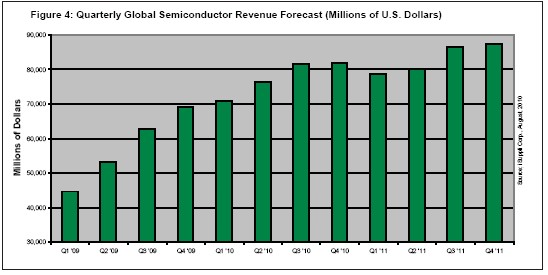 所有主要半導(dǎo)體類別——微型元件、邏輯、模擬、分立與光學(xué)及傳感器,預(yù)計2010年的增幅都將高于25%。