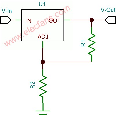 第一個(gè)需要考慮的因素便是確定預(yù)期輸出電壓。最為簡(jiǎn)單的線性穩(wěn)壓器擁有一個(gè)固定的輸出電壓范圍,其由和圖1所示R1/R2網(wǎng)絡(luò)相類似的內(nèi)部連接確定??烧{(diào)穩(wěn)壓器可能會(huì)有四個(gè)引腳:Vin、Vout、接地引腳和調(diào)節(jié)引腳。調(diào)節(jié)引腳是用來(lái)調(diào)節(jié)電壓設(shè)置電阻。