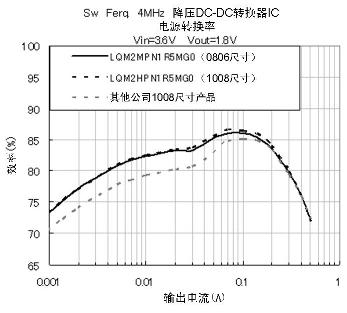 如同圖4中顯示的Rac特性,LQM系列產(chǎn)品能夠充分抑制Rac。同時,圖2的電流-感值偏執(zhí)特性中顯示,它在電流通電時也能確保高感值,擁有良好的電力變換效率特性。這些性能能夠?qū)崿F(xiàn)手機(jī)在待機(jī)狀態(tài)下的高電力變換效率,對延長電池壽命做出貢獻(xiàn)。
