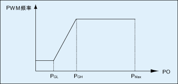 圖4顯示了非導通時間調制的基本原理。當負載改變時,開關頻率將連續降低或增加,開關頻率與輸出功率的關系如圖5所示。低負載或空載時這種連續調變降低開關頻率的方式除了可以有效降低能量損失外,還可以避免前兩種方法中輸出電壓突升或突降的問題。