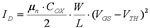 其中,μn為反型層中電子的遷移率,COX為氧化物介電常數與氧化物厚度比值,W和L分別為溝道寬度和長度。
