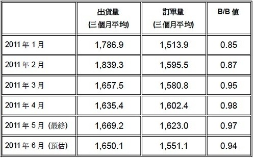- 2011年6月北美半導體設備B/B值0.94