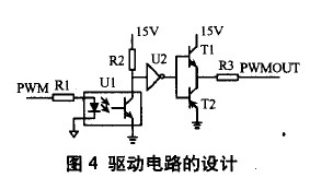 考慮到原副邊的電氣隔離,設計了以下驅動電路,如圖4。