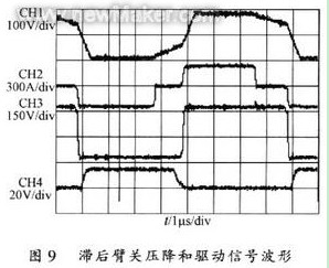 圖9為滯后臂管壓降和其驅動脈沖的波形。