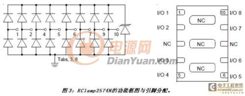 另外,RClamp2574N的線間典型電容為1.7pF,這個(gè)值足夠小,可避免任何數(shù)據(jù)包丟失或錯(cuò)誤。