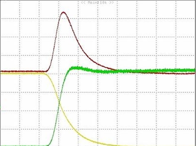開關損耗其實也是一個很重要的指標。從下圖可以看到,導通瞬間的電壓電流乘積相當大。一定程度上決定了器件的開關性能。不過,如果系統對開關性能要求比較高,可以選擇柵極電荷QG比較小的功率MOSFET。