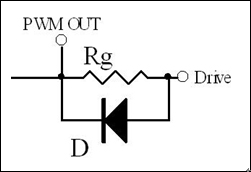 以上討論的是MOSFET ON狀態時電阻的選擇,在MOSFET OFF狀態時為了保證柵極電荷快速瀉放,此時阻值要盡量小。通常為了保證快速瀉放,在Rg上可以并聯一個二極管。當瀉放電阻過小,由于走線電感的原因也會引起諧振(因此有些應用中也會在這個二極管上串一個小電阻),但是由于二極管的反向電流不導通,此時Rg又參與反向諧振回路,因此可以抑制反向諧振的尖峰。