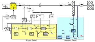 所有被介紹的控制方式都可以適應對稱和不對稱負載條件和逆變器硬件。對于這些基礎的控制方式,正如前邊介紹的,只有電網形成方式和電網支持方式才適用于被積極地應用到物理層面的控制整個電力系統。分布式發電單元在電網平行方式中不能被從電網側控制。然而,除了充分的基礎控制方式,發電單元控制一定要能夠與定義的超常規二次電網調控器進行交互作用。這個要求同樣能夠被所描述的基礎控制方式所實現。由于這些控制結構是基于常規電力系統控制策略的,它們提供了與常規電力系統控制同樣的二次調控接口(如圖5所示)。因此,具備這些功能的DERs和RESs就可以像常規單元一樣連接到電網控制中。電網中的二次有功調控器被要求將電網頻率調節到正常值。它為電網形成和電網支持的控制結構提供了在關注點的有功功率偏移值。