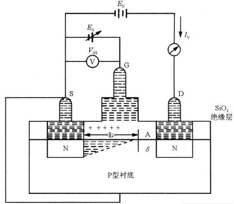 圖1 增強型絕緣柵場效應管的結構原理