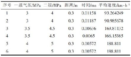 本測速系統已成功應用在雙級空氣炮彈射物體測速實驗中,實驗數據如表1 所示。