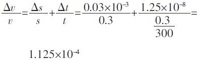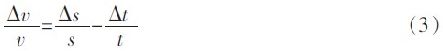 為依據國標QBT2443-1999 的規定計算。規定一級鋼卷尺自零點端起到任意線紋的示值誤差限為:Δ=(0.1+0.1L)mm,L 單位為m。若測試距離取0.3m,Δs 取0.03mm,待測運動物體速度為300m/s,那么將數據代入式(4)得到系統測速的最大相對誤差為: