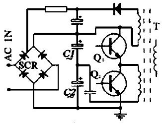 筆者在1000W半橋式開關電源的設計中, 首次用一個單向可控硅代替前端AC 輸入整流橋的一個橋臂, 其控制端由主變壓器的一個副繞組來控制(如圖9 所示) .這樣, 在電源接通的初始態, 該整流橋處于半波整流態。待電源啟動后, 可控硅導通, 整流橋轉為全波整流。由此可達到降低啟動電壓的目的。同時, 還可有效地抑止浪涌電流。實踐證明, 該電路簡單可靠很值得大家借鑒。