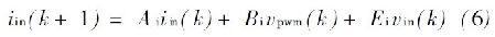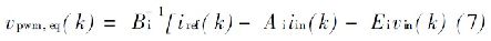 式中, 輸入電流i in ; 整流控制電壓v pw m; 輸入電源電壓vin 都代表參加同步dq 參照系數, A i, Bi 和Ei, 為系統確定的電路參數。鑒于當前的逆變命令i ref ( k) ,DSMC 仿真相當于控制式如下: