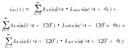 式中, I inv0是直流分量的逆變器輸入電流; I invn 是n 階部分的電流。通過公式( 4) 可看到, I outA = I outB = I outC和ΦA= ΦB= ΦC , 同時有I invn = 0, 如果n> 0 三相負載電流是平衡的。否則, 交流成分存在會造成連鎖反應。