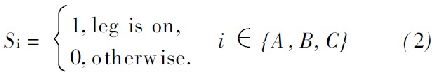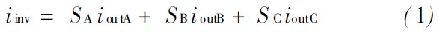 式中, SA , S B 和SC 是交換功能的交換機頂端的三個逆變器的開關, 如下: