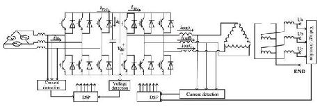 一個標準的基于DSP 控制在線式UPS 系統如圖3 所示。系統由推動型的前端整流器、直流鏈接、電壓源逆變器構成。這兩個功率轉換器使用標準的空間矢量PWM 控制, 產生快速電壓調節與總諧波失真最小化控制逆變器。