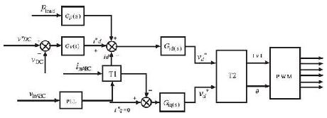 在正常工作條件下, 穩壓器輸出穩定的直流母線電壓和d 軸電流控制, 但是逆變器負荷不均衡, 就會產生波動的直流電壓, 因此整流器在不平衡負載下會造成前端總諧波失真( THD) 的輸入電流。