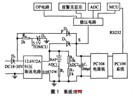 環(huán)境測試儀是指能夠測量溫度、濕度、壓力、風(fēng)速等環(huán)境參數(shù)的儀器。為了滿足各種復(fù)雜地理環(huán)境下的測試需求,測試儀迫切需要小型化和便攜式。為了保持與現(xiàn)有軟件的最大兼容性, 我們選用PC104 的系統(tǒng)架構(gòu)設(shè)計了便攜式的測試儀。PC104 是IBM PC 兼容工業(yè)標(biāo)準(zhǔn)的架構(gòu)體系。PC104 主板對電源系統(tǒng)要求較高, 設(shè)計選用工業(yè)級的PC104 電源板,此電源板支持寬范圍輸入( DC8~ 36 V) , 效率高達(dá)96 % 。為了滿足便攜性, 系統(tǒng)必須支持電池組供電( 鋰電池組或鉛酸蓄電池組等) , 由于鋰電池組具有單節(jié)電池標(biāo)稱電壓高、自放電率低、質(zhì)量能量密度和體積能量密度高、沒有記憶效應(yīng)等優(yōu)點(diǎn),本系統(tǒng)選用鋰電池組供電。本文主要討論了系統(tǒng)供電電路及電池組充電電路的設(shè)計。