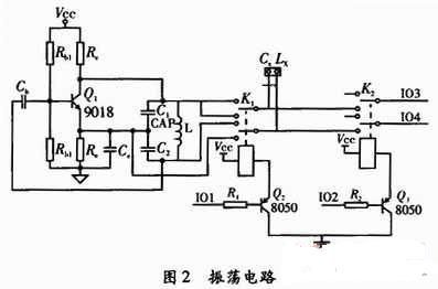 采用LC振蕩器的振蕩原理,LC振蕩器選擇L或是C參數(shù)為固定值。通過LC的組合,振蕩器起振,當(dāng)測量電容時電感固定,測量電感時電容固定。通過LC振蕩器的頻率計算公式