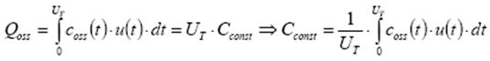 通過對電流波形的三角形形狀和MOSFET的恒定輸出電容的粗略估算,可以計算出MOSFET關斷過程產生的電量。如果電流換向受到電感的限制(大多數應用都是這樣),則可假定電流波形為三角形形狀。要計算在特定變壓器電壓UT條件下,MOSFET的等效恒定電容Cconst,必須知道時變非線性輸出電容coss(t):