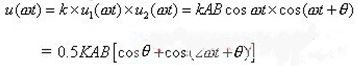 K為模擬乘法器的放大系數。進行低通濾波后濾掉交流成分得: