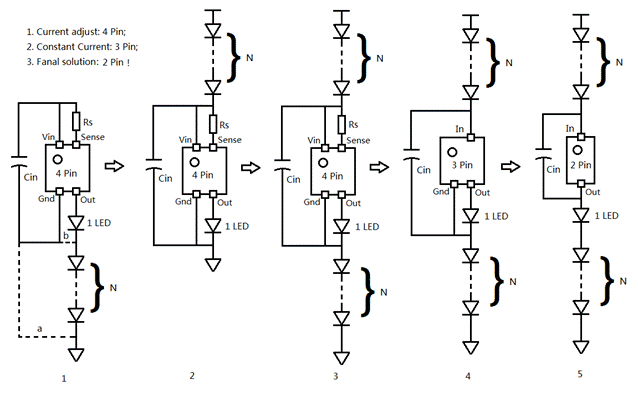 其中4條管腳的恒流二極管主要用于可調恒流電流。