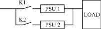 如果采用1+1冗余結構,即采用兩個輸出電流為100A的電源模塊并聯供電。正常情況下只有一個模塊工作,當它發生故障,退出工作時,另一個模塊開始工作,系統仍然能正常運行。