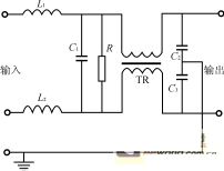 輸入濾波電路具有雙向隔離作用,它可抑制從交流電網輸入的干擾信號,同時也防止開關電源工作時產生的諧波和電磁干擾信號影響交流電網。電路如圖7所示,是一種復合式EMI濾波器,L1、L2和C1構成第一級濾波,共模電感TR和電容C2、C3進行第二級濾波。C1主要用來濾除差模干擾,選用高頻特性較好的薄膜電容。電阻R給電容提供放電回路,避免因電容上的電荷積累影響濾波器的工作特性。C2、C3跨接