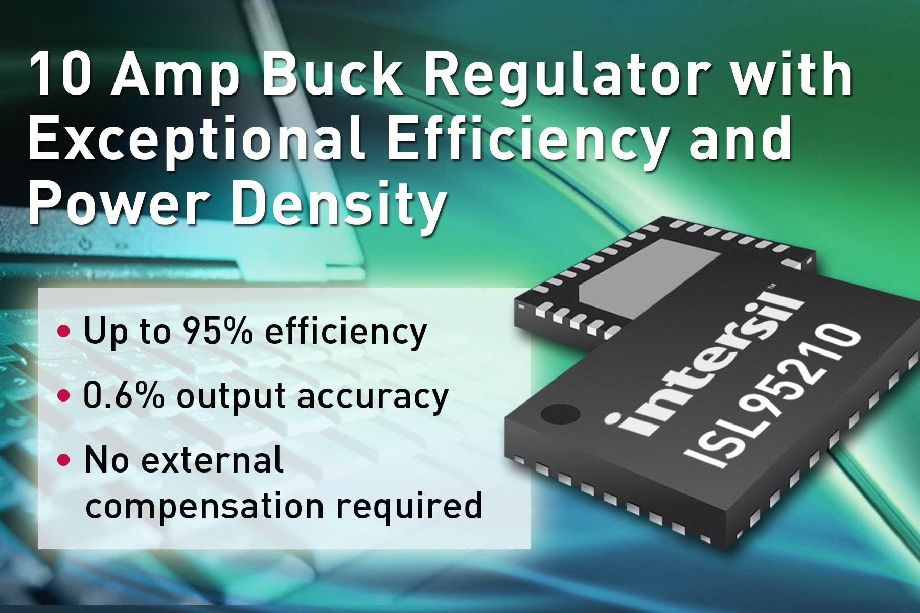 全球高性能模擬混合信號半導體設計和制造領導廠商Intersil公司宣布,推出具有優異效率和功率密度的最新10A集成式FET同步降壓穩壓器---ISL95210。