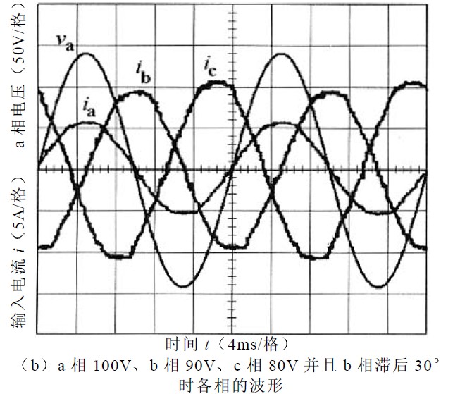 ③單位功率因數(shù)控制方法在輸入電壓不對(duì)稱時(shí)輸入電流會(huì)發(fā)生相移,實(shí)現(xiàn)不了單位功率因數(shù)。