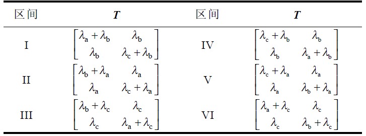 其中矩陣 T 在不同區(qū)間的取值如表1。