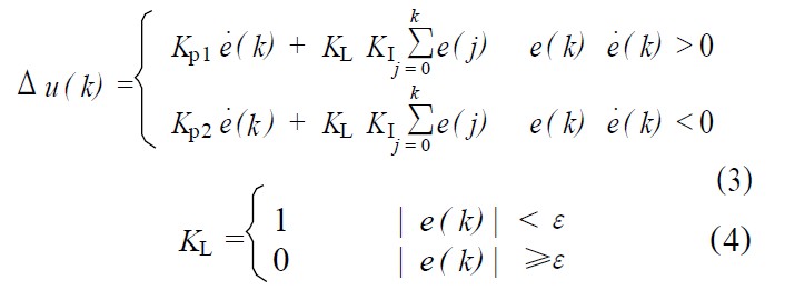 式中:ε---積分門限。---誤差的變化量,= e(k) - e(k - 1)。