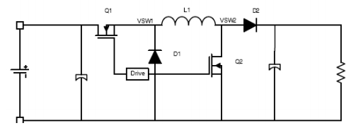 四開關非反相降壓-升壓有兩種操作模式,即降壓模式和降壓-升壓模式。在降壓模式下,轉換器產生輸入電壓脈沖,它經過 LC 濾波來產生一個較低的直流輸出電壓。輸出電壓可以通過修改相對于開關周期或開關頻率的導通時間來改變。