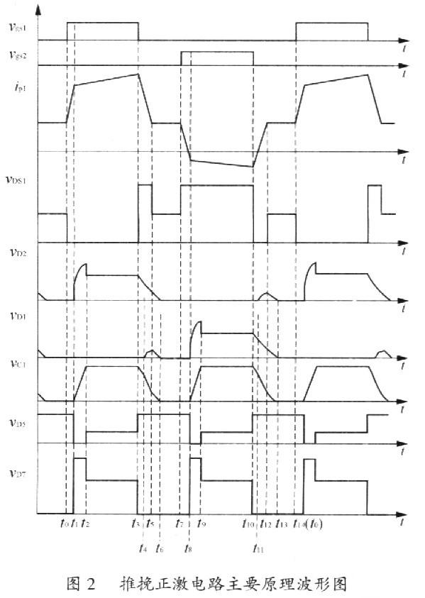 圖2為加無損緩沖吸收的PPF電路工作原理波形圖,一共分為14個工作模態。
