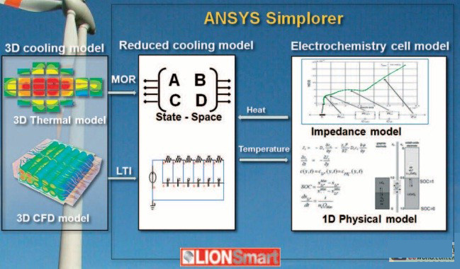 ADFEM、ZSW和Lionsmart三家受了德國ZF的資助,對(泛鋰)電池進行了熱方向的建模。CADFEM主要的工作,是把電池包的內部散熱通 過簡化的方法進行處理,這種MOR的方法,我個人沒有搞太明白,應該是一種將多自由度通過處理后簡化的方法。ANSYS就是做這個事情滴,由于本人沒有特 別的基礎,因此避過這一塊。