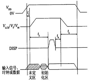 所有液晶顯示器對(duì)于上電、下電時(shí)序都有嚴(yán)格要求。如果上電、下電時(shí)序不符合要求,則不能正常顯示,常常會(huì)出現(xiàn)亂碼、鎖存、殘留顯示等現(xiàn)象。以日本日立公司驅(qū)動(dòng)芯片HT66130/HT66137驅(qū)動(dòng)320×240液晶顯示屏為例,對(duì)上電、下電時(shí)序的要求如圖3所示,一般液晶顯示驅(qū)動(dòng)芯片要求也大致如此。