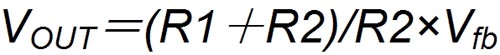 典型的反饋電壓是1.15V±2%。當選擇引腳(SEL)設置為低時,FB0反饋引腳就與參考電壓進行比較,FB1引腳接地,用以提供反饋參考地。當SEL為高時,FB1用作參考電壓,FB0接地。輸出電壓可用公式5和公式6計算: