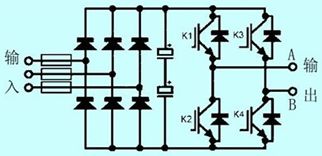 以目前最常見的單元級聯(lián)式高壓變頻器為例,對其中一個功率單元為例進行熱設(shè)計。功率器件采用igbt,其電路如圖1所示。