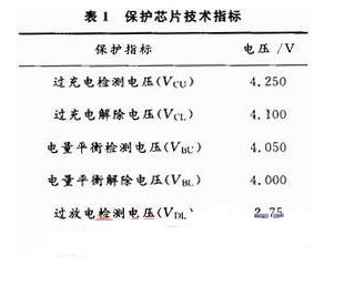 圖5摘取了保護(hù)板1中前三級(1~3級)保護(hù)電路,6~10級保護(hù)電路與此相似。所選取的芯片技術(shù)指標(biāo)如表1所示,對于過充電、電平衡和過放電功能都有其檢測和解除電壓,以確保各狀態(tài)的可靠進(jìn)入和退出。