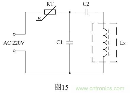 圖15中RT為熱敏電阻,Lx為小功率開關(guān)變壓器初級(jí)線圈,C1為分流電容,C2為限流電容。電容C1和C2的大小,需根據(jù)小功率開關(guān)變壓器初級(jí)線圈勵(lì)磁電流的大小來決定。一般消磁電流需要達(dá)到極限電流Imax的3~5倍。