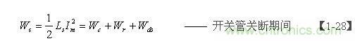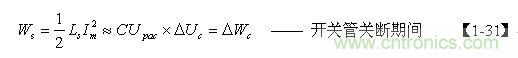 如果不考慮電阻R對電容器C充電時產生的分流作用,以及開關管由導通到完全關斷期間漏極電流(逐步減小)對電容器C充電時產生的分流作用,即:Wr=0 、Wds=0 ,則【1-28】式可以改寫為: