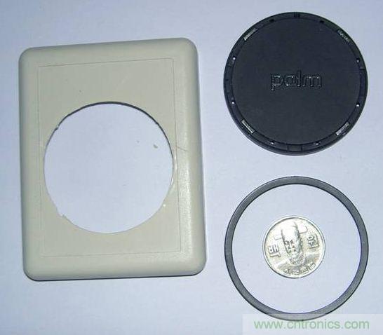 這時候點金石側視圖就像一個“凸”字形。俯視點金石,按照內圈的直徑,在移動電源的上蓋上挖一個洞,使點金石凸出的內圈剛好能穿過這個洞。要注意將移動電源后蓋上被點金石四塊磁鋼頂住的地方打薄,以便點金石能完美的嵌入移動電源的上蓋。